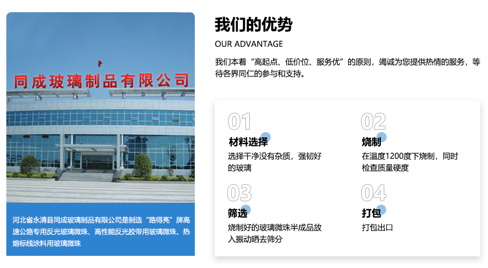 專業生產玻璃微珠  版權所有:玻璃微珠丨反光玻璃微珠丨噴砂玻璃珠丨道路玻璃微珠-永清縣同成玻璃制品有限公司